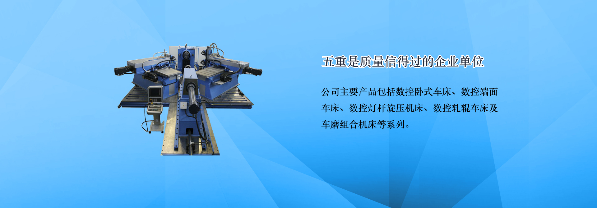 青島五重數(shù)控機床有限公司(原青島第五重型機械廠)是一家集科研,生產(chǎn),銷售為一體的數(shù)控機床生產(chǎn)企業(yè),主要產(chǎn)品:端面車床,數(shù)控端面車床,車銑復合機床,車磨組合機床,膠輥磨床,地磅遙控器,數(shù)控旋壓機。連續(xù)多年被評為青島市信用企業(yè)、質(zhì)量信得過單位。公司位于青島國際中小企業(yè)工業(yè)園,地理位置優(yōu)越,距流亭飛機場僅10公里,濟青、榮烏、青威等多條高速公路經(jīng)過,交通十分便利。... [MORE + ]